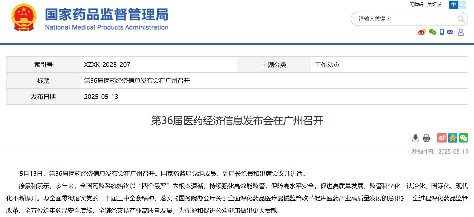 第36屆醫(yī)藥經(jīng)濟(jì)信息發(fā)布會(huì)在廣州召開國家藥監(jiān)局召開化妝品備案管理智能化轉(zhuǎn)型工作視頻會(huì)