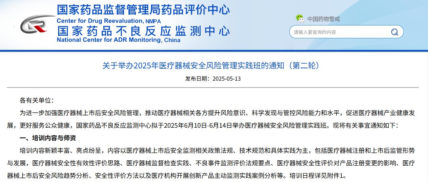關(guān)于舉辦2025年醫(yī)療器械安全風(fēng)險(xiǎn)管理實(shí)踐班的通知(第二輪)