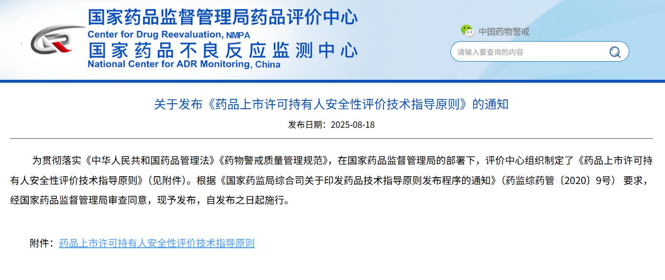 政策法規 || 《藥品上市許可持有人安全性評價技術指導原則》(附法規概覽8.18-8.22)