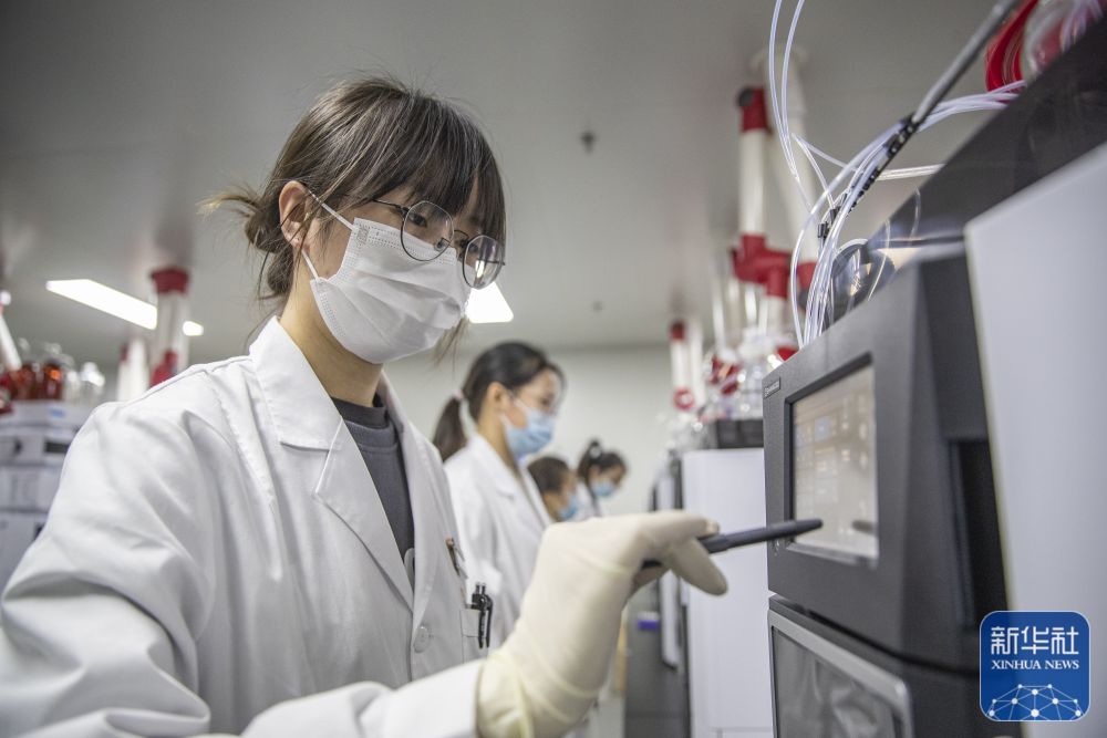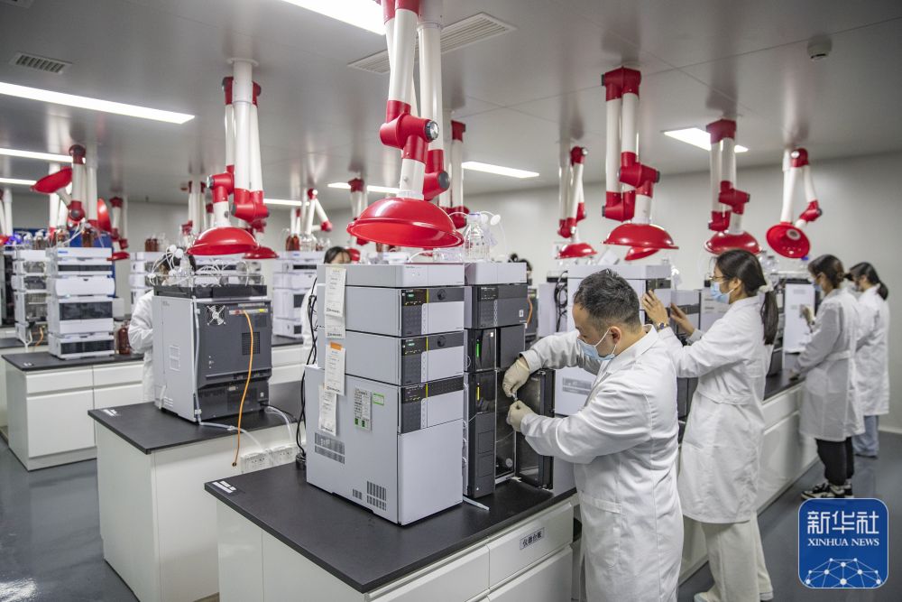 12月16日,在重慶市永川區(qū)新領(lǐng)先(重慶)生物醫(yī)藥一體化研發(fā)服務(wù)基地,新領(lǐng)先重慶研究院的研發(fā)人員在液相區(qū)對(duì)樣本進(jìn)行色譜分析。