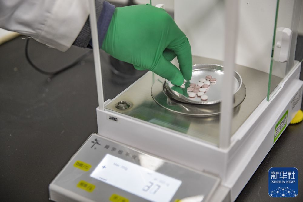 12月16日,在重慶市永川區(qū)新領(lǐng)先(重慶)生物醫(yī)藥一體化研發(fā)服務(wù)基地,新領(lǐng)先重慶研究院的研發(fā)人員對(duì)雙重壓片機(jī)壓制的實(shí)驗(yàn)藥品進(jìn)行稱(chēng)重查驗(yàn)。