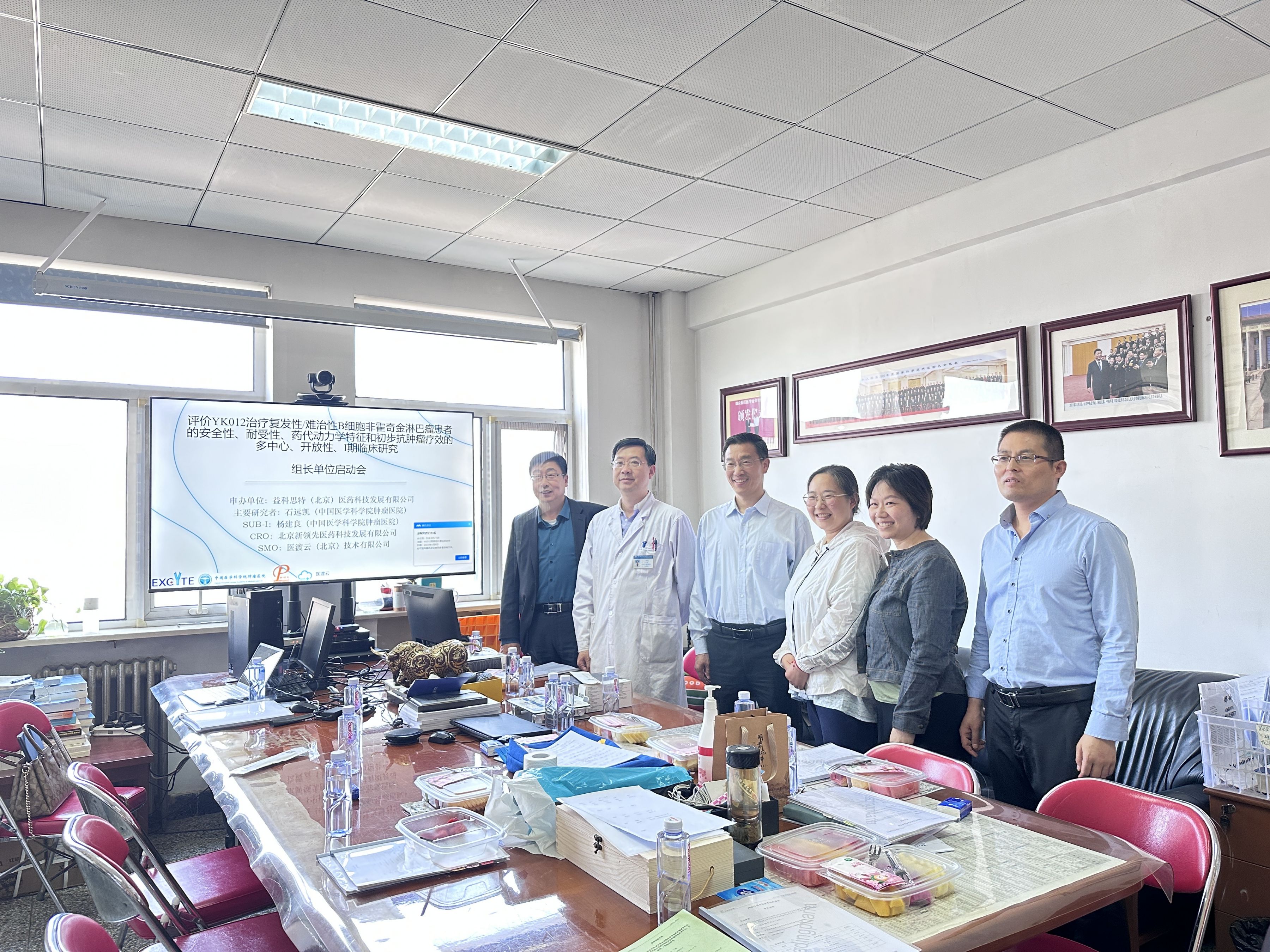 ▲ 中國醫學科學院腫瘤醫院臨床研究中心副院長、腫瘤內科主任石遠凱教授(左2),益科思特(北京)醫藥科技發展有限公司聯合創始人孟慶武先生(左1)和聯合創始人袁清安博士(左3),北京新領先醫藥臨床事業部運營總監潘麗怡女士(左4),申辦方臨床副總監任沖(右3)及CRO方醫學總監袁少雄女士(右4))團隊代表等啟動會現場合影