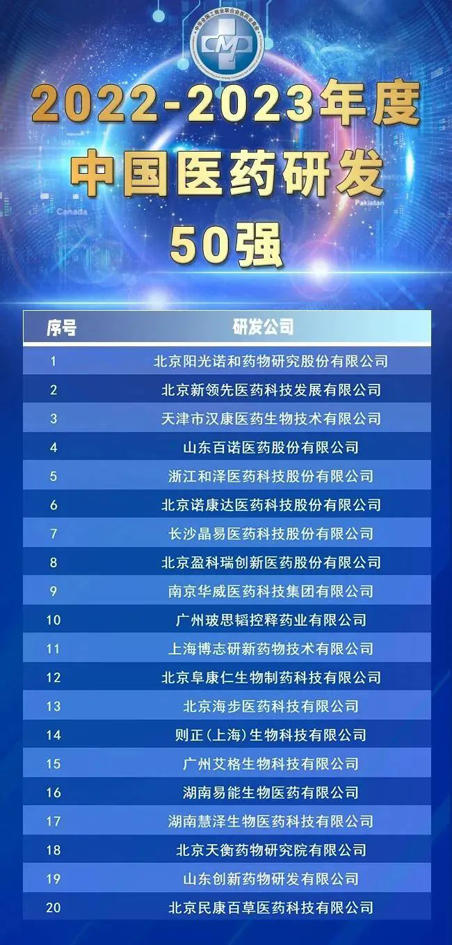 榜單發(fā)布 | 新領(lǐng)先醫(yī)藥連續(xù)八年蟬聯(lián)“中國醫(yī)藥研發(fā)50強(qiáng)”前三甲