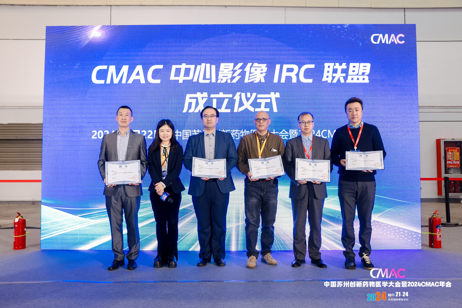 大會現場還舉行了CMAC中心影像IRC聯盟成立儀式,包括新領先醫藥副總裁張容火先生在內的5位專家受聘為CMAC IRC聯盟專委會專家委員。