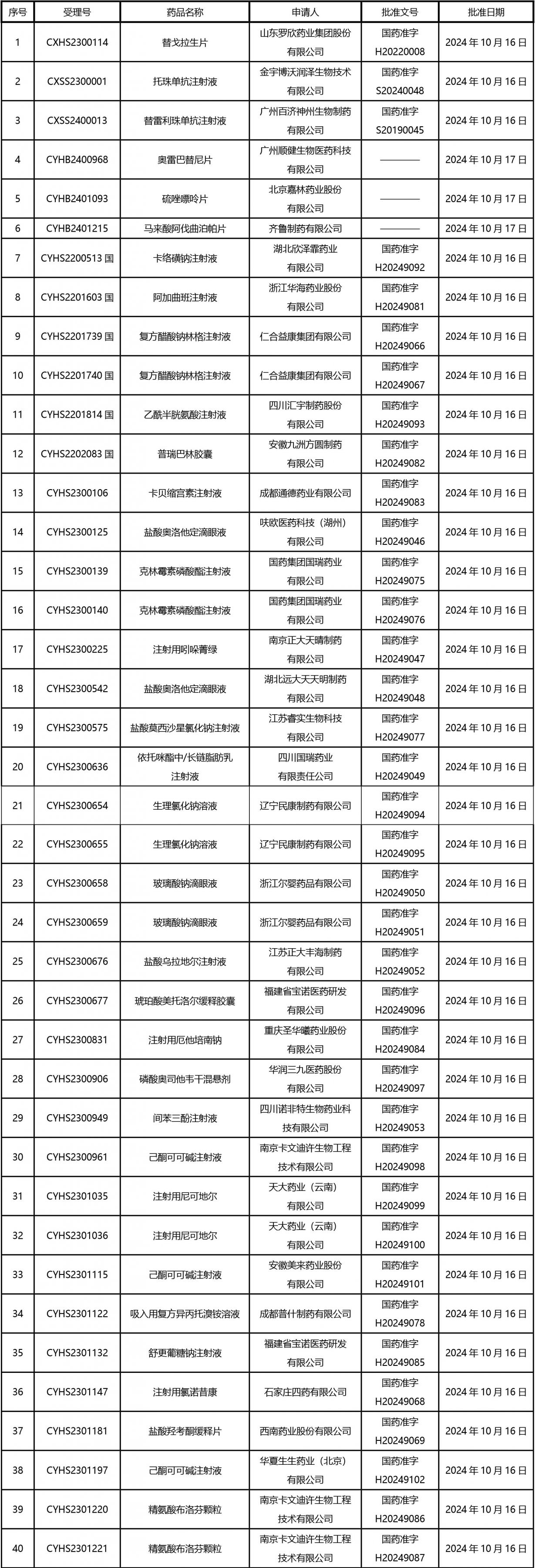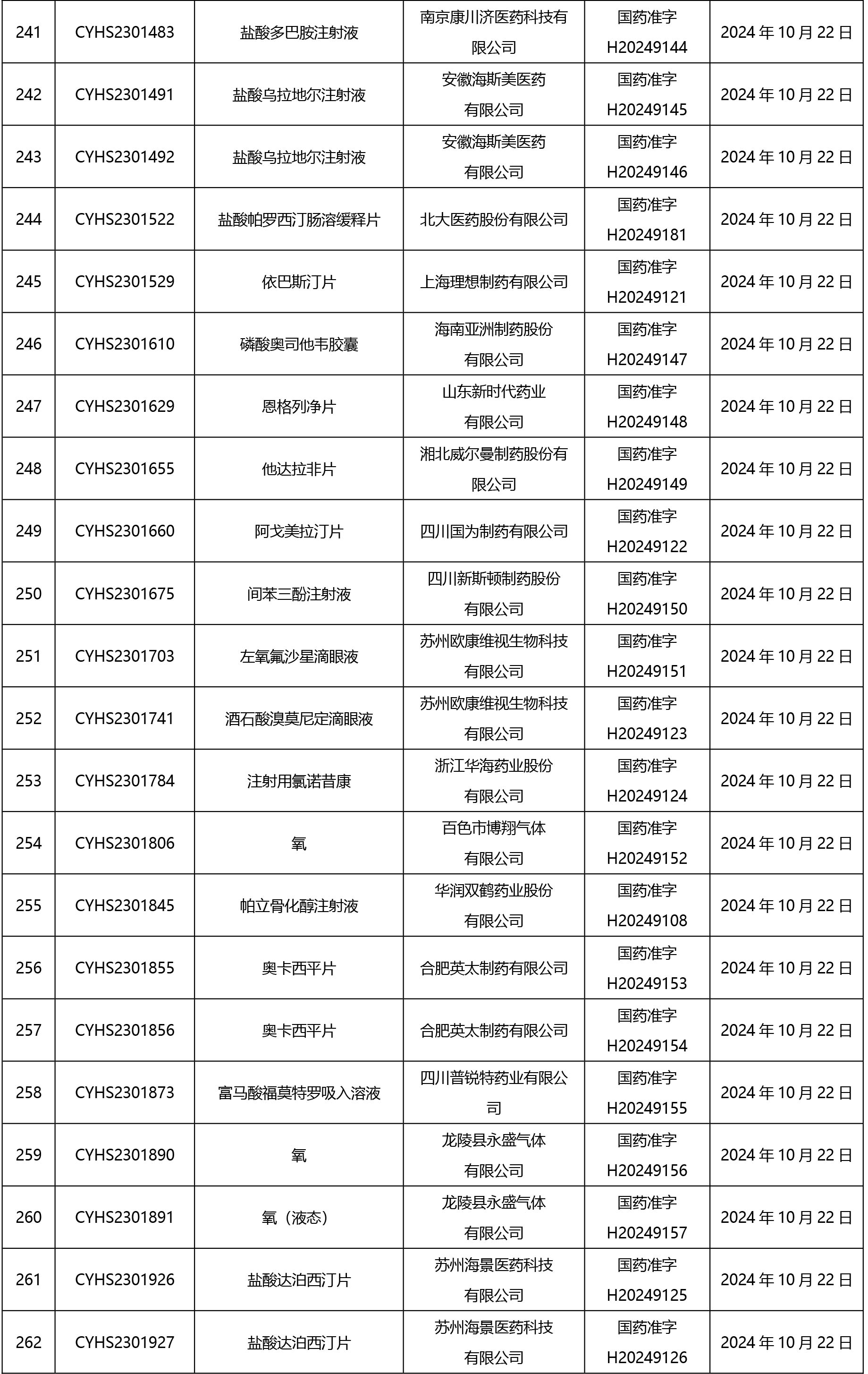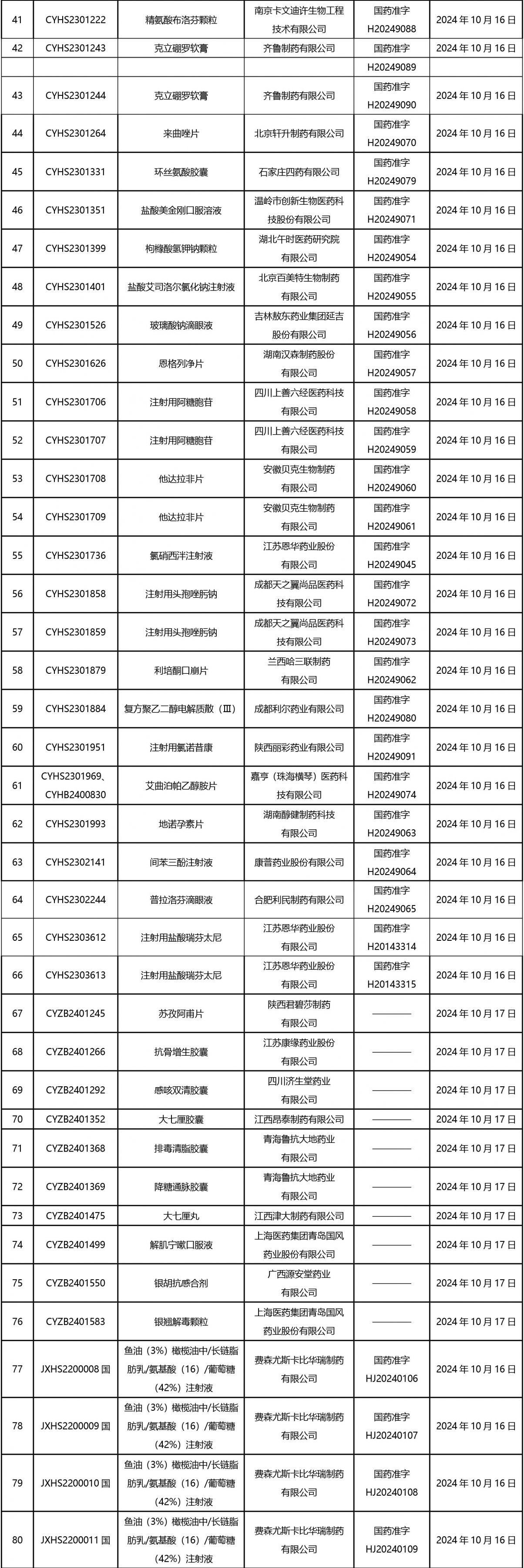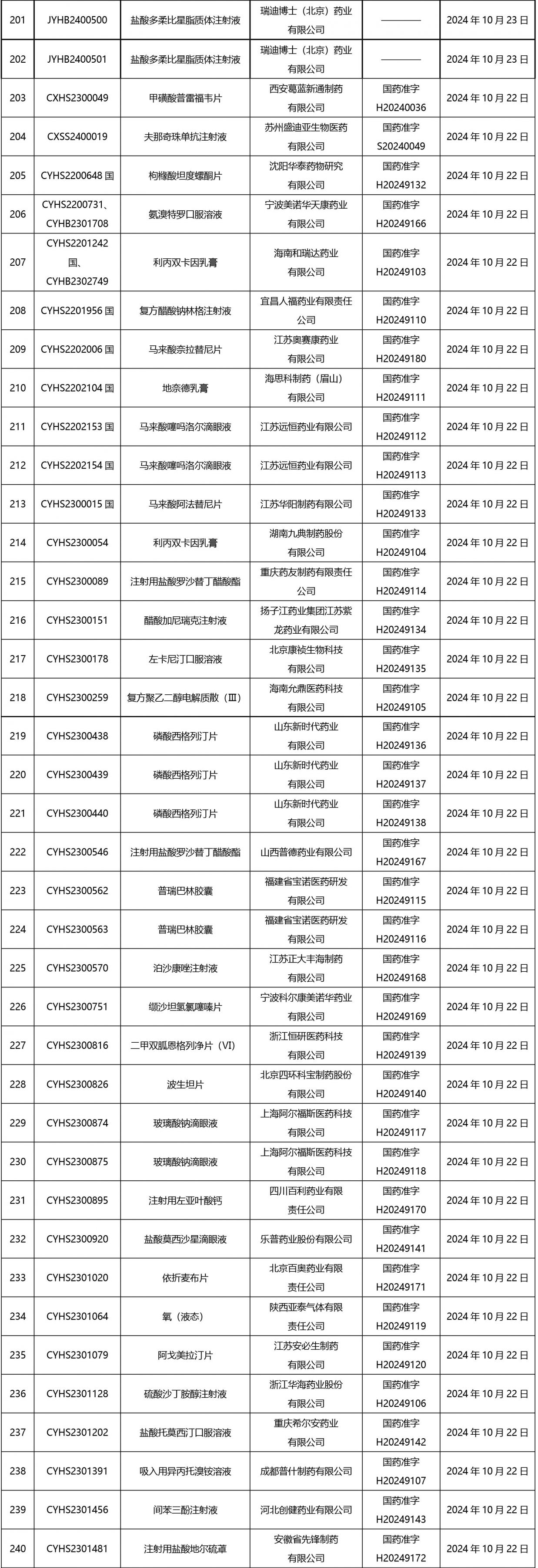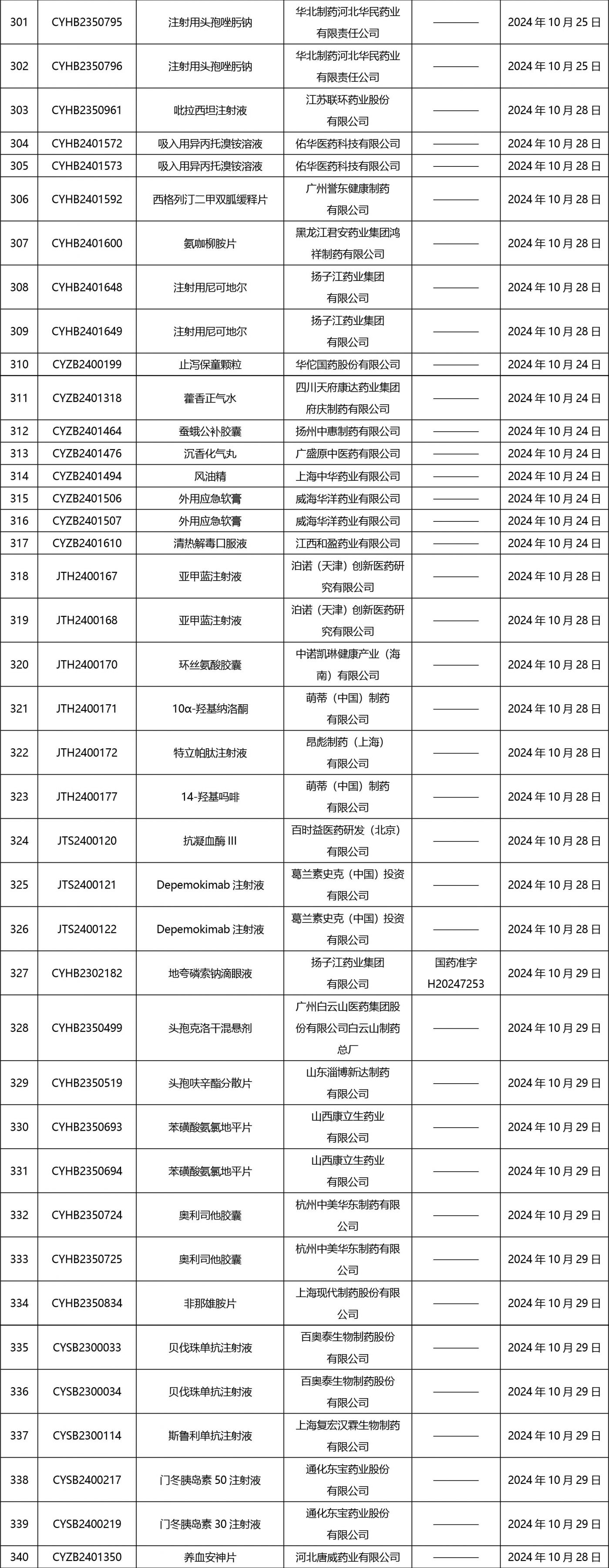 2024年10月21日至2024年11月1日 16:00發(fā)布368個待領(lǐng)取藥品批準(zhǔn)證明文件,其中注射液125個,一致性評價品種45個。